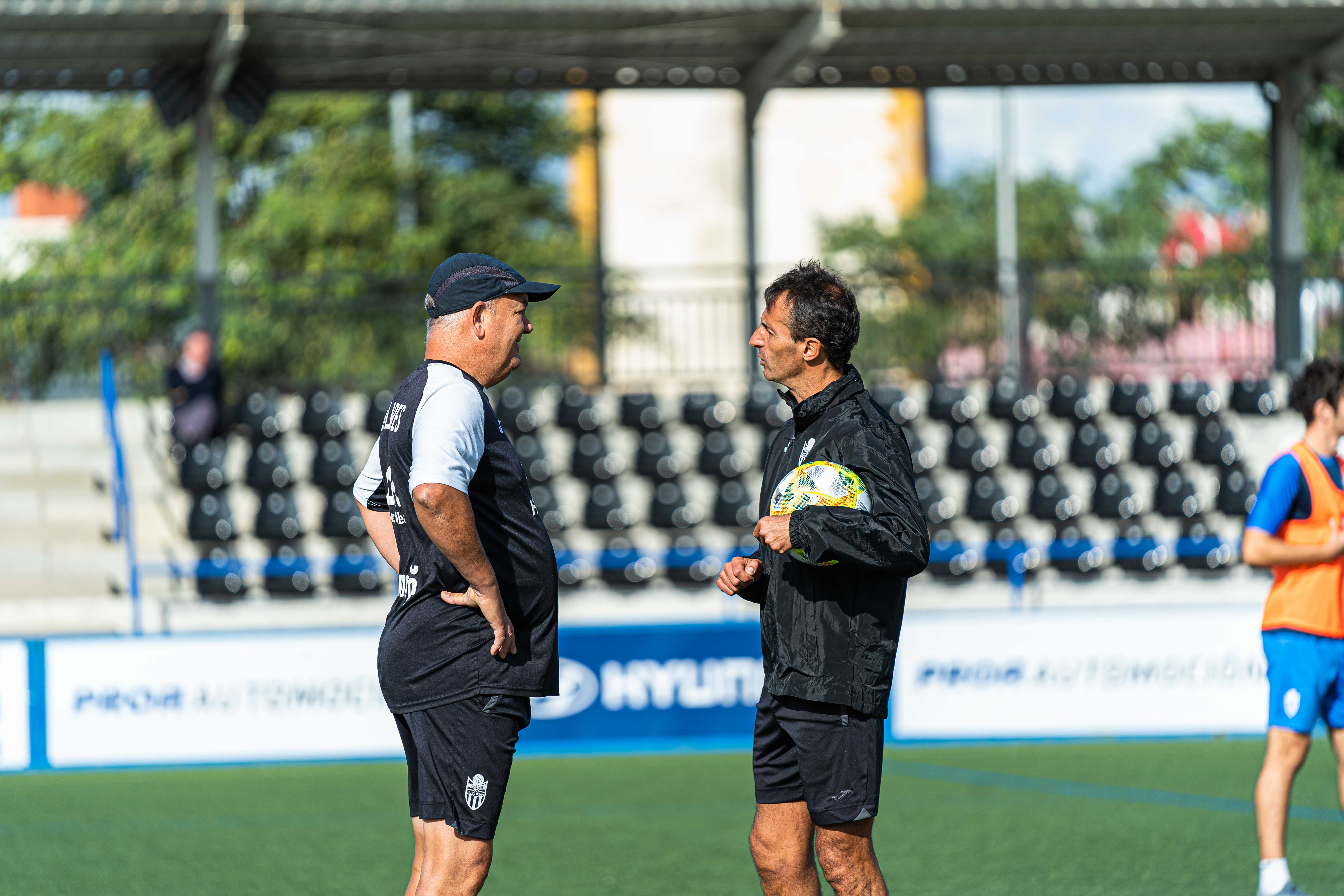 Manix: «Es importante ganar el domingo, no miramos más allá. Queremos ganar a un rival de nuestro nivel y aprovechar la buena inercia que llevamos. ¿Que si jugamos en otro liga por el nivel demostrado? No, para nada. Jugamos en Segunda B. Los que juegan en otra liga son el Racing de Santander y el Mirandés. Los que estamos aquí es por méritos del año pasado, quitando aquel que haya comprado algo. El Inter empezó muy bien y ha perdido los dos últimos partidos fuera de casa pero lo que he visto de ellos es un equipo de nuestro nivel. Ni Iturraspe ni Aurtenetxe estarán, tampoco Ferrone ni Manu Herrera. Tenemos fondo de armario y preparados para sacar un equipo competitivo. La primera semana de Manu es de descanso total y la segunda ya veremos si empieza a hacer algo. Tiene que haber muchos jugadores importantes, en la liga siempre recurres a mucha plantilla por necesidad y tengo la tranquilidad que van a dar el nivel los cambios que haya porque el grueso o la columna está. No hay pega. Xavi Ginard tiene una experiencia que no le pesará volver a jugar en el Estadio. NO le pesará y tenemos toda la confianza de que la portería estará bien guardada. Ha entrenado muy bien cuando no jugaba, con actitud muy positiva. Jugamos siempre los mismos, puede cambiar algo pero no deberían de notarse las bajas. Llevamos 5 partidos sin recibir gol, es una cultura defensiva, construimos la casa desde abajo y si hacemos gol el equipo es solidario y trabaja defendiendo el botín. Jugamos la semana pasada contra el mejor equipo del grupo y no recuerdo ningún ocasión que nos hicieran, señal de que el equipo es sólido. Jorge Ortiz está a gusto, positivo, ya ha marcado todos los de la temporada pasada, nos viene bien y el equipo sabe buscarle y asistirle y nos beneficiamos ambos, el equipo y él».