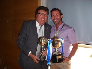 En las imagenes momento en el que el Vicepresidente de la FFIB el Sr.Lopez lacal impone el escudo a Miguel Bestard (penyaarrabal)