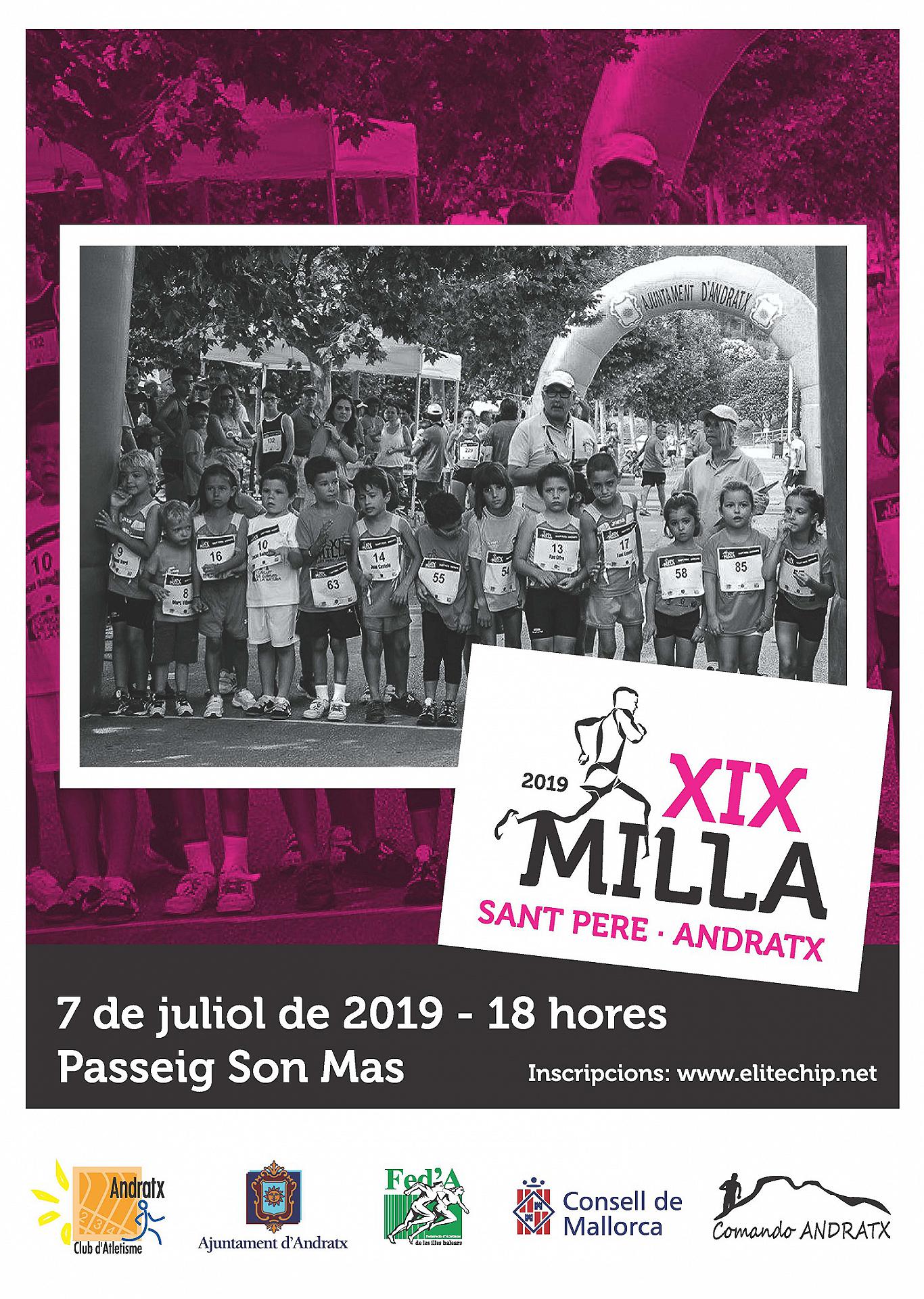 1.– La XIX Milla Urbana Sant Pere Andratx es celebrarà el proper 7 de Juliol de 2019 a les 18.00 hores.
