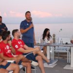El el turno de parlamentos, ha tomado la palabra en primer lugar el entrenador del Santa Catalina Atco. Dani Vaquer que comentó “ que tiene un grupo de calidad excelente, y que aunque no hayan comenzado bien el campeonato de liga, poco a poco irán avanzando posiciones. “ Posteriormente tomó la palabra el Presidente de la Entidad Lluc Colom, “ Que deseo muchos éxitos al equipo, que levanten el ánimo porque dijo tenemos un equipo grande. “ Posteriormente tomó la palabra el Director del Hotel D. Ramón Sánchez que “ nos dio la bienvenida al Hotel Son Caliu, y que está orgulloso de tener esta relación tan estrecha con el Santa Catalina Atco. Tomó la palabra a continuación D.Miguel Bestard que comento “ Doy las gracias al Sta. Catalina por la invitación que me ha hecho, y que siempre la Federacion estará unida a este club referencia en Palma. Deseó muchos éxitos al equipo y sobre todo que las lesiones le respetaran “. Finalmente el capitán comentó “ que a pesar de haber comenzado de forma irregular, trabajarán para levantar al equipo al lugar que se merece. “.