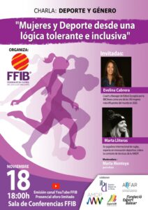 Con motivo del Día Internacional contra la Violencia de Género, la FFIB organiza la mesa redonda «La Violencia con perspectiva de género en el Deporte», con Evelina Cabrera y Marta Lliteras