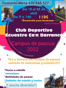 El CD. SON CLADERA organizará los días 19-20-21-22 de Abril, el “ Campus de Semana Santa. “ La organización por parte de el CD. Son Cladera en unión de Felix García yá es signo de notoriedad y éxito tanto en el aspecto organizativo ó deportivo, ya que todos los participantes estarán guiados por monitores, puestos al servicio de todos los participantes al Campus.