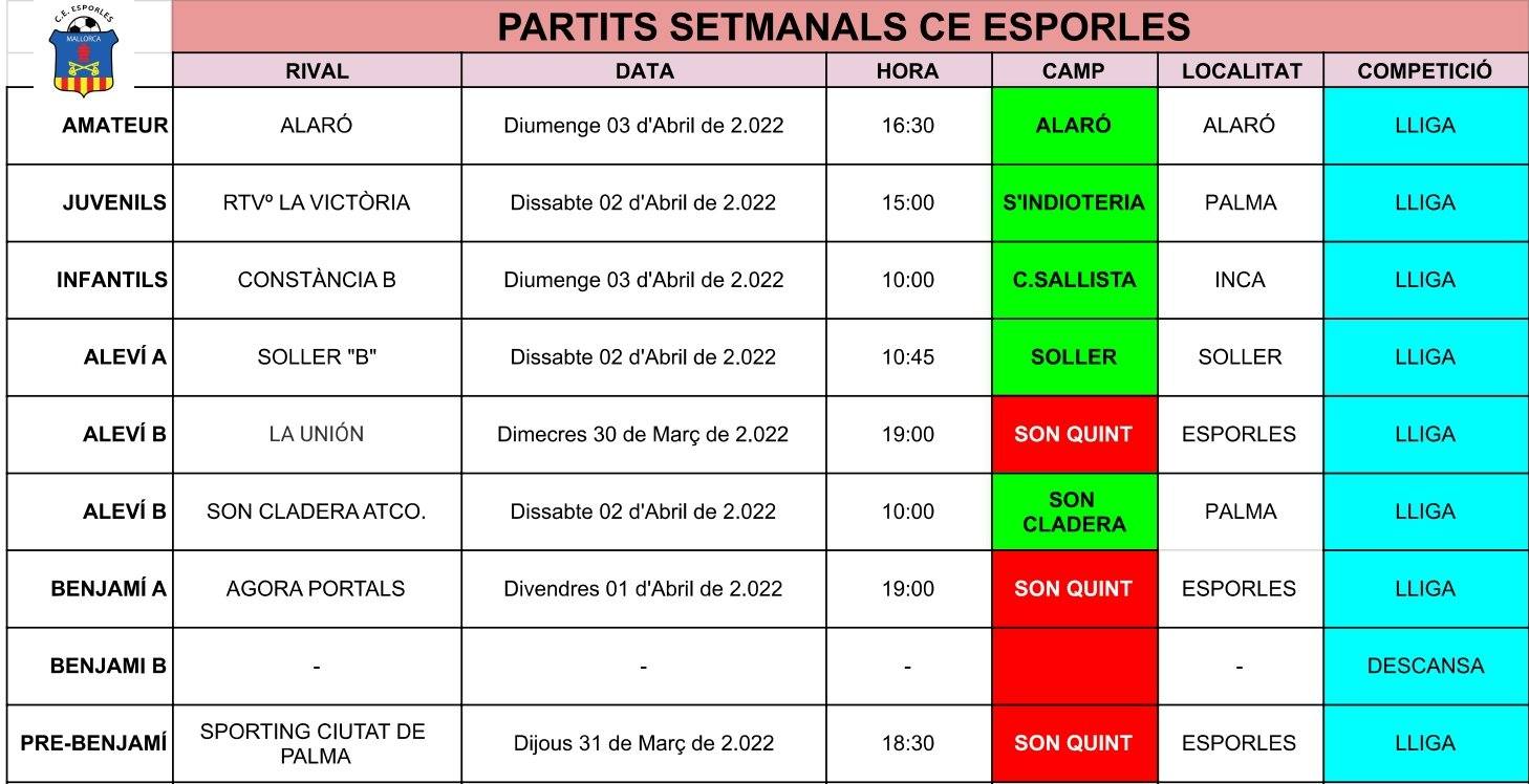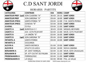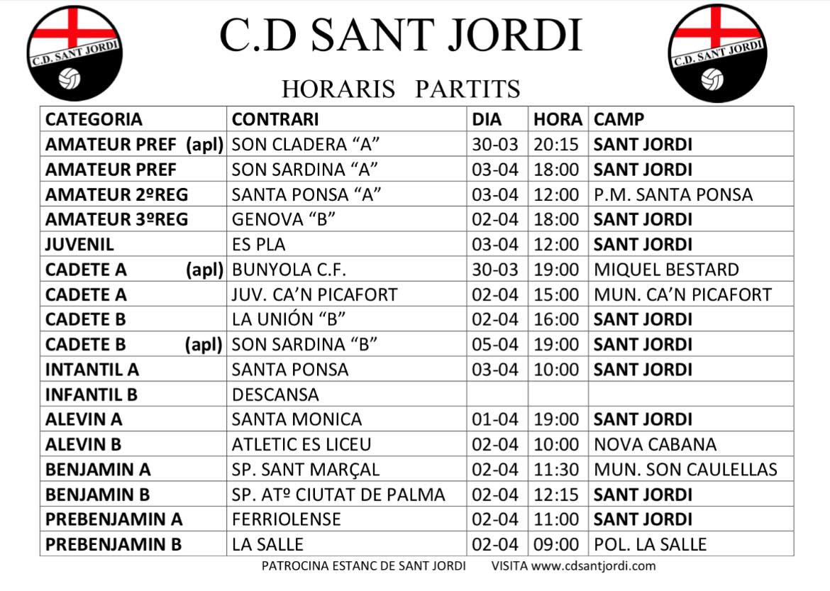 | SANT JORDI » – SON CLADERA | SANT JORDI | 20:15 | 25 | – | – | |||