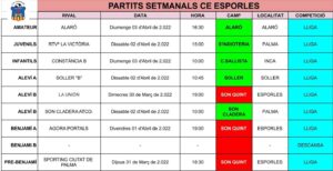 | FELANITX – MANACOR | ES TORRENTÓ | 20:00 | 30 | – | – | |||