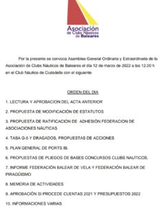 EL CLUB NÀUTIC CIUTADELLA ACULL DISSABTE MIGDIA L’ASSEMBLEA GENERAL DE L’ASOCIACIÓN DE CLUBS NÁUTICOS DE BALEARES, AMB TOTS ELS CLUBES DE LES ILLES PRESENTS