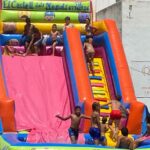 nuestros jugadores se lo pasaron genial en la gran fiesta final con los castillos hinchables